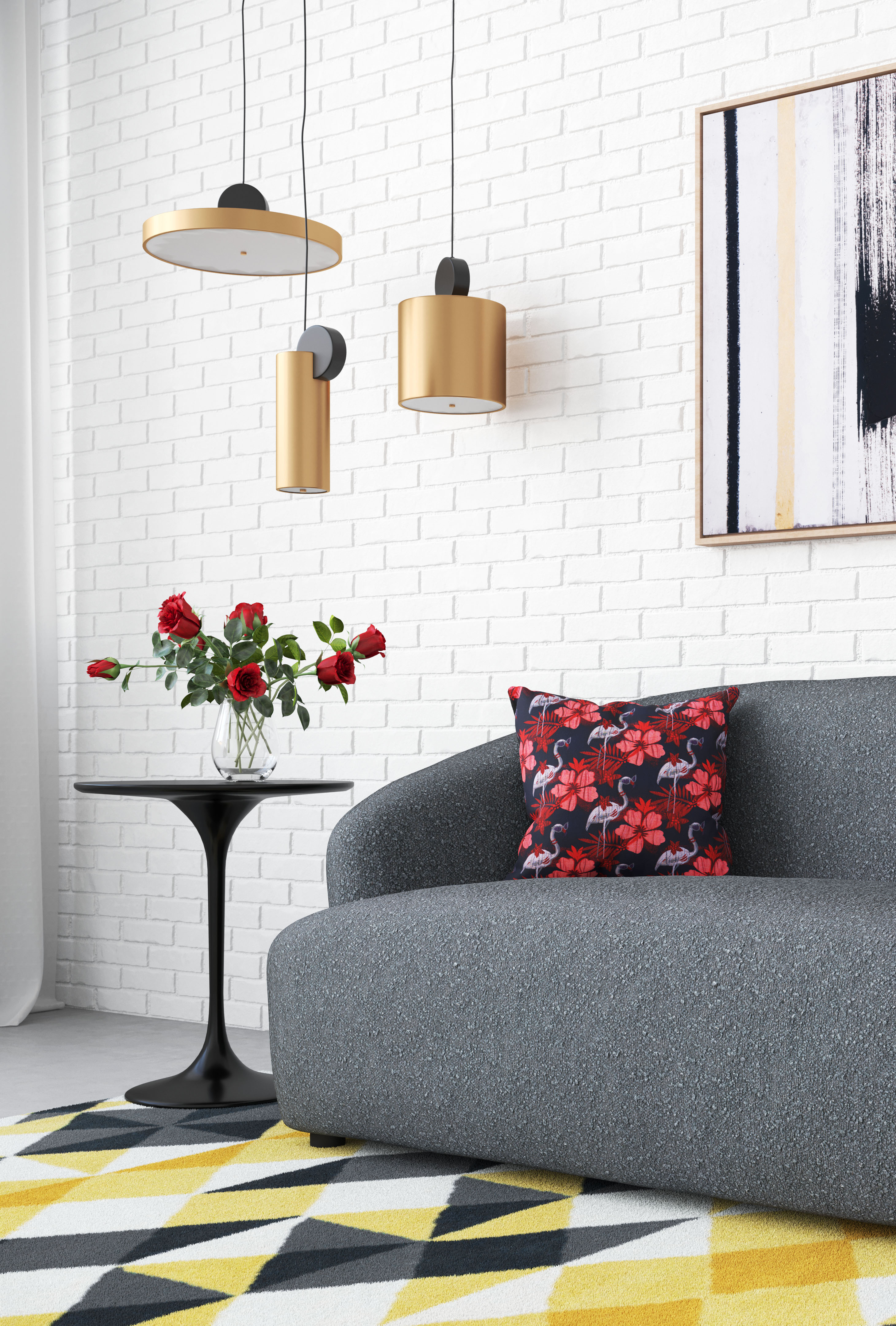 With a modern and sleek shape, the Martiza Ceiling lamp has a gold-plated steel body and LED light unit. It combines modernism with a deco shape and works for any space, residential or commercial.