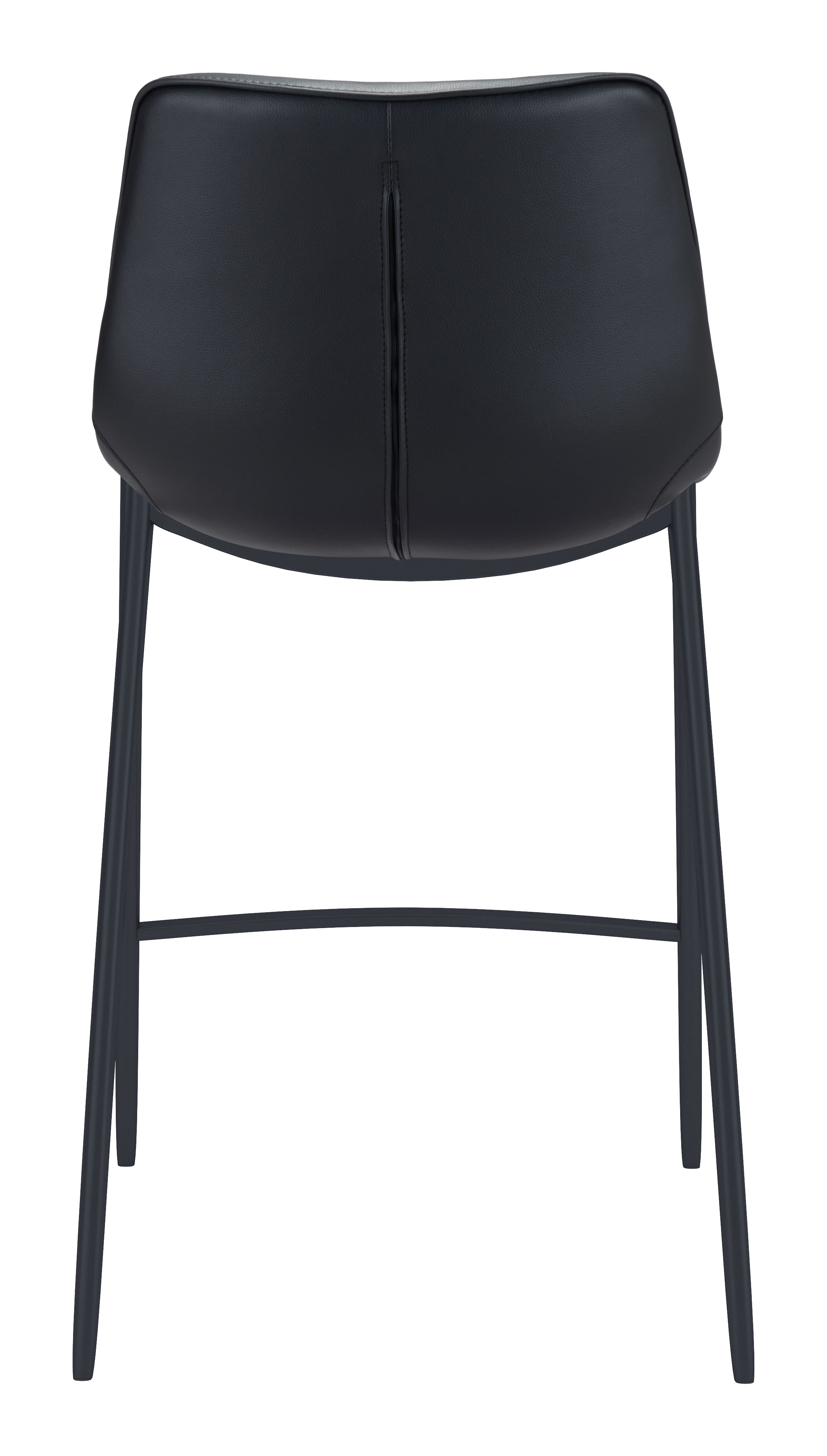 High design meets everyday casual. This handsome barstool with its slim profile pulls up perfectly to the bar. Its super comfortable curved seat is covered in black faux leather with dramatic stitching. Matte black Stainless Steel legs are complete with protective plastic feet to keep your floors scratch-free.