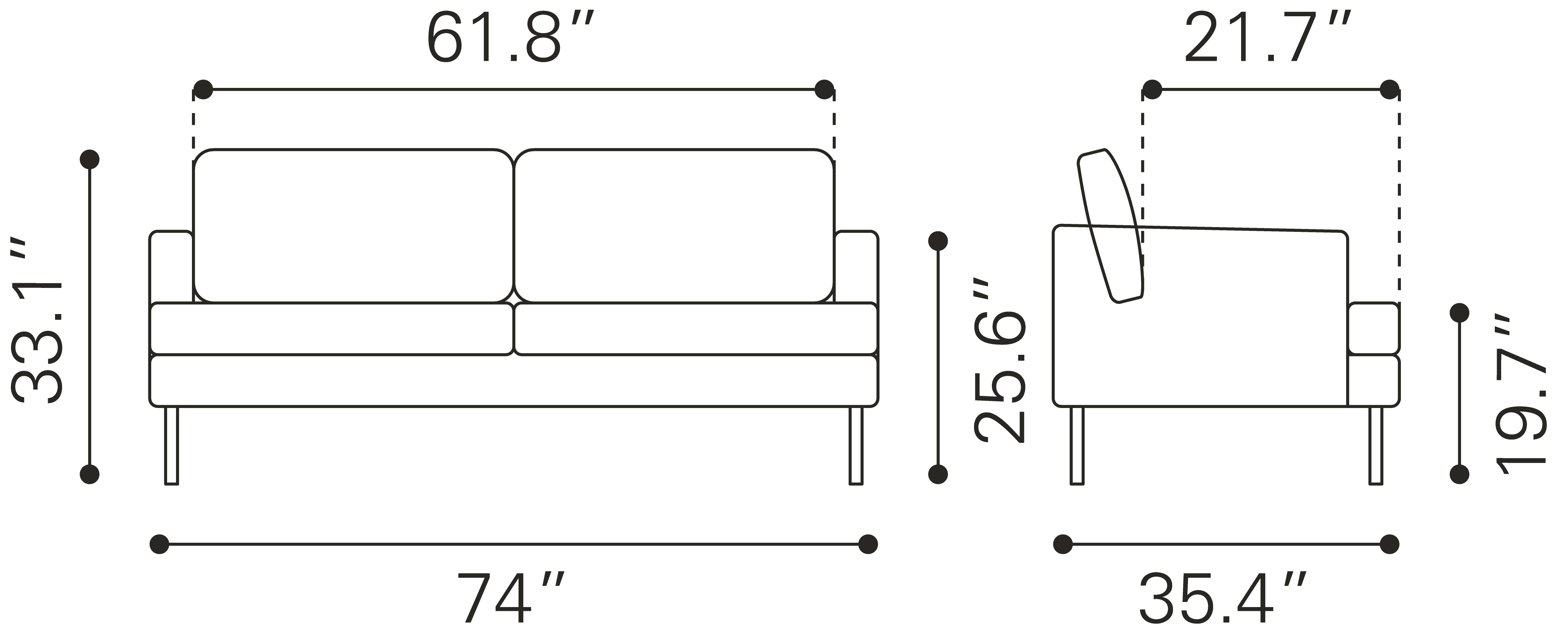 Classically modern in shape and design, the Decade Sofa is comfortable and stylish, wrapped in durable vinyl and on powder coated steel legs.  This piece fits in any home or office lobby.